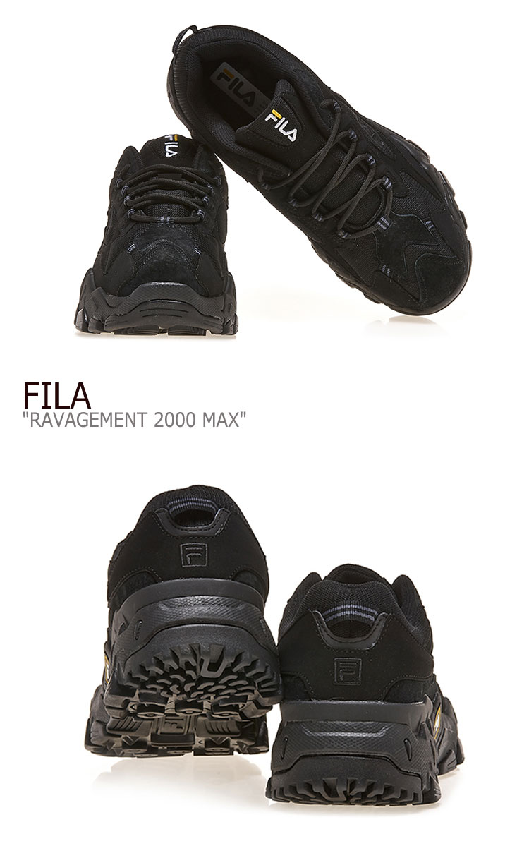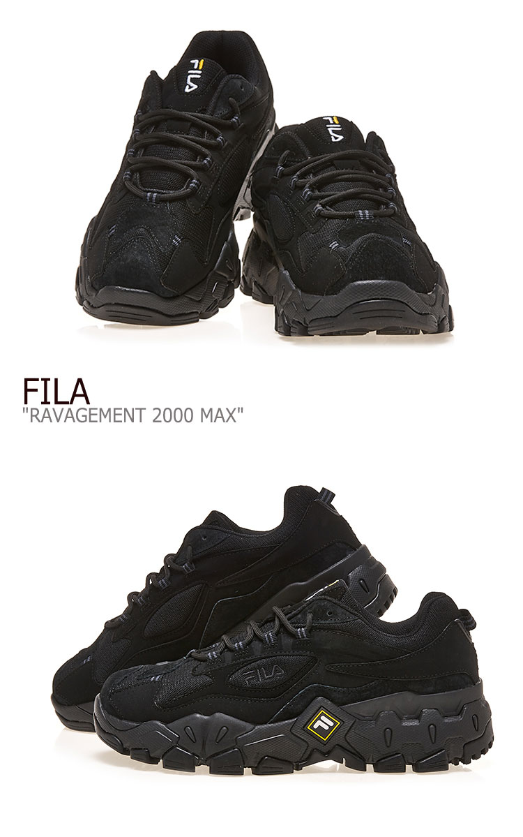 商品紹介 フィラ スニーカー FILA メンズ レディース RAVAGEMENT 2000 MAX ラビージメント 2000 マックス BLACK ブラック 1JM00798 001 シューズ 2000年度Cross Trainingに発売されたRAVAGEMENTのアップグレードバージョン。